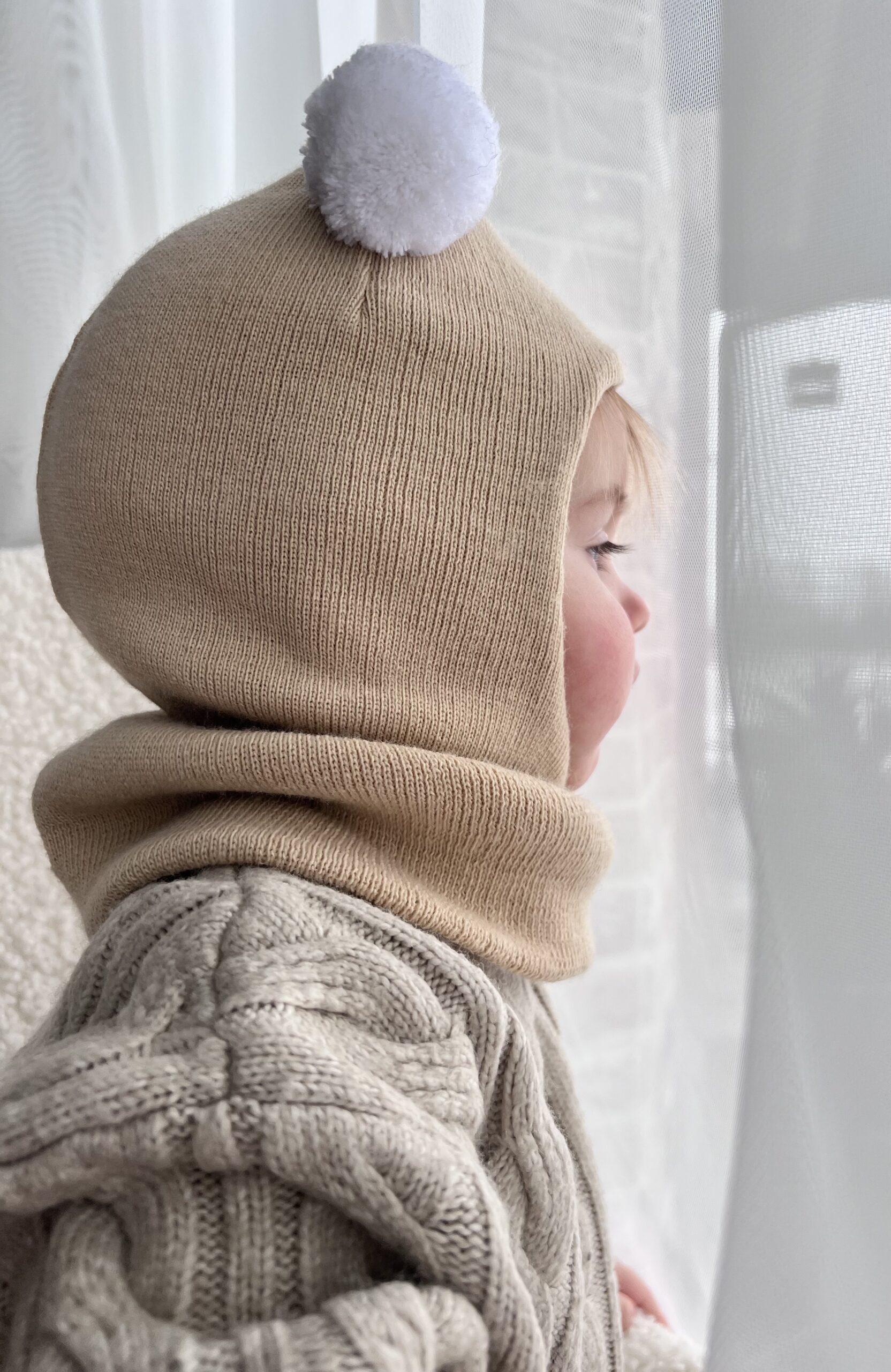 Merino wool children's helmet beige POMPONAS Merino wool children's helmet beige POMPONAS
