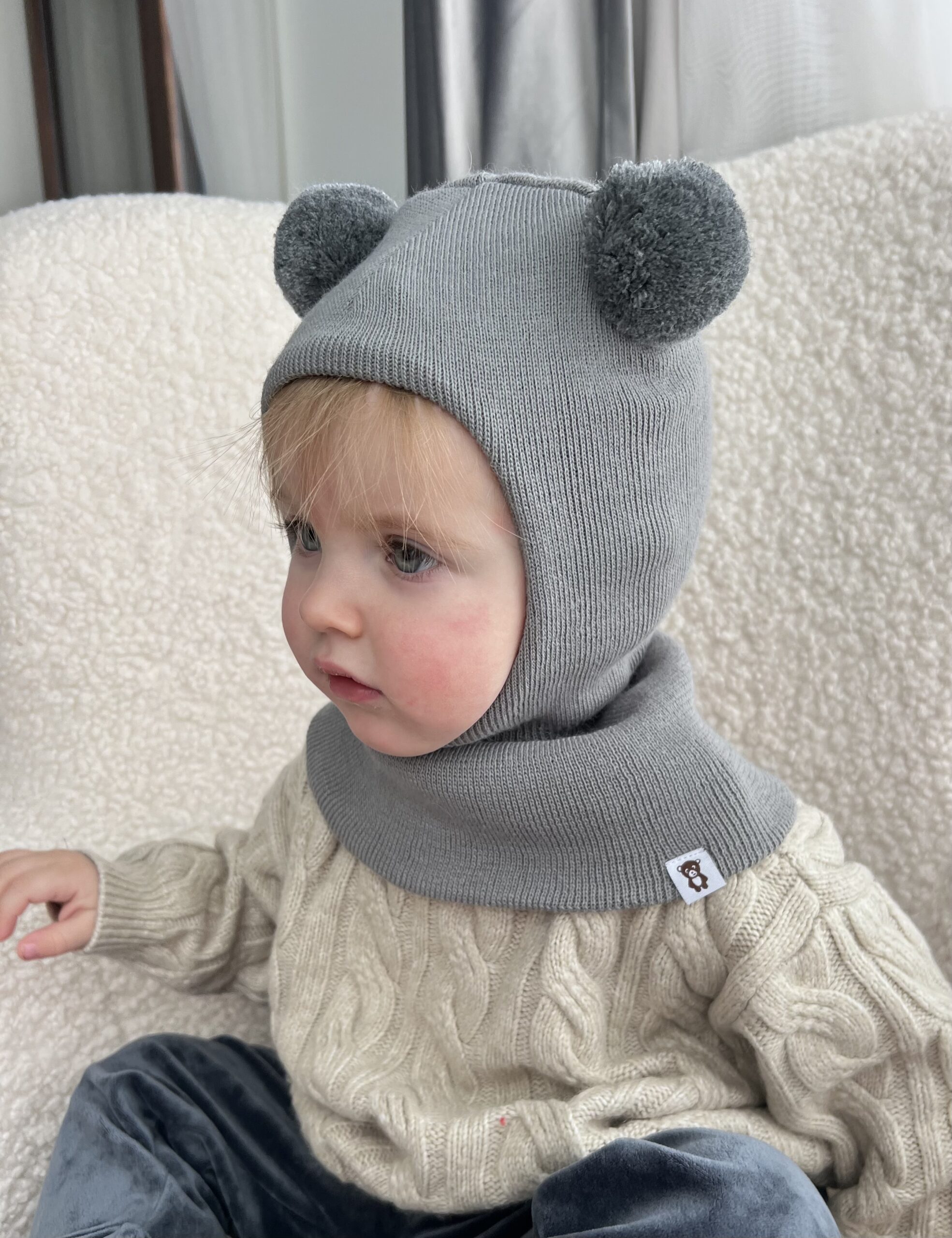 Merino wool children's helmet grey POMPONAS Merino wool children's helmet grey POMPONAS