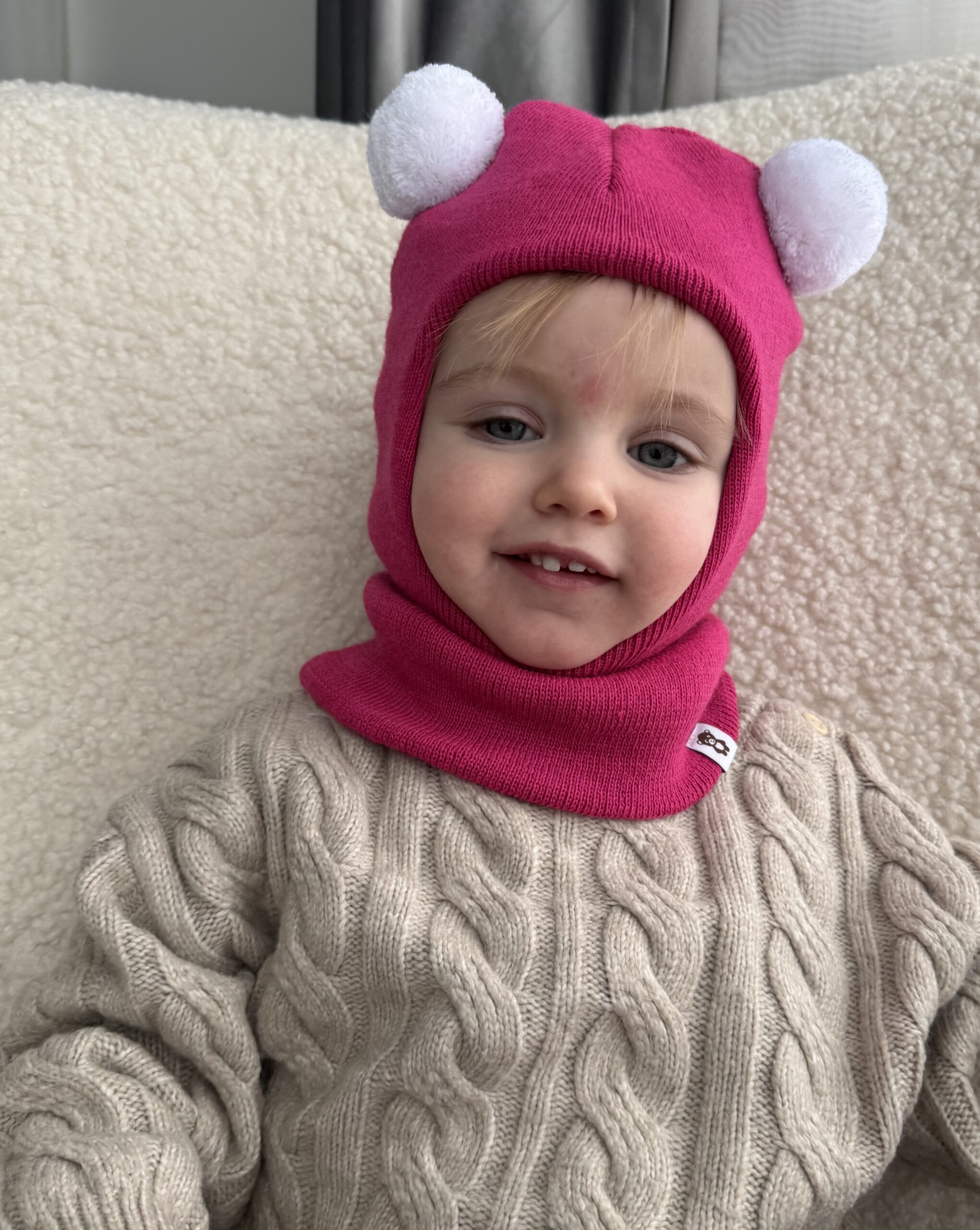 Merino wool children's helmet pink POMPONAS Merino wool children's helmet pink POMPONAS