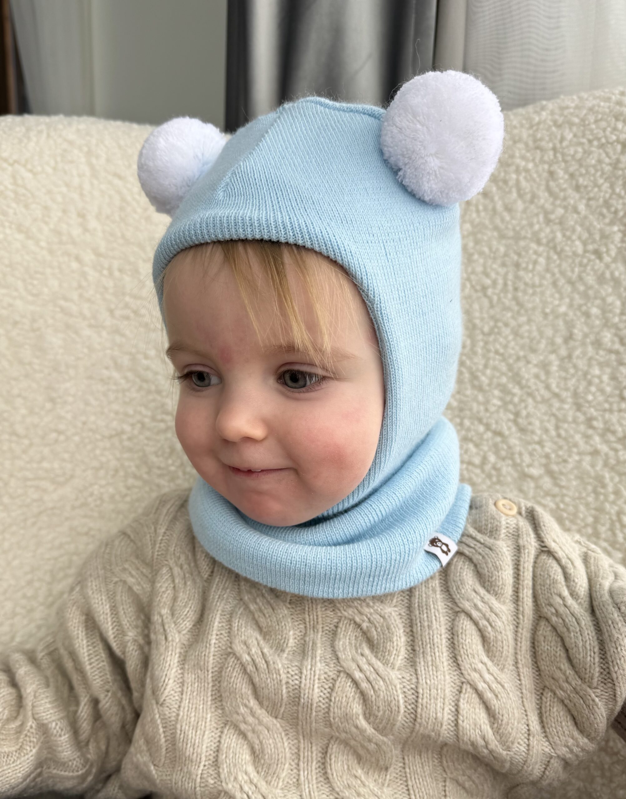 Merino wool children's helmet blue POMPONAS Merino wool children's helmet blue POMPONAS