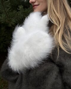 PREMIUM mittens are an exceptionally warm and luxurious winter accessory, created for those who value naturalness, comfort, and elegant style. These mittens are made from 100% angora rabbit wool, known for its extraordinary softness, lightness, and excellent heat-retaining properties.
