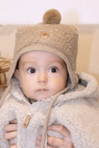 This children’s brown lamb wool hat is a soft and reliable choice for little ones. Made from 100% natural lamb wool, it is extremely gentle, pleasant on the skin, and does not irritate even sensitive baby skin. Wool has natural thermoregulating properties – it keeps warm while allowing the skin to breathe, ensuring your child stays comfortable without overheating.