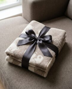 Natural wool has moisture-absorbing and evaporating properties, so the blanket remains fresh and comfortable. It is a practical choice for all seasons—keeping warm in winter and gently wrapping during cooler evenings.