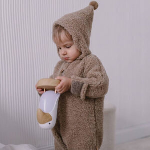 This children’s lamb wool jumpsuit is an exceptionally warm, soft, and cozy choice for your little one’s comfort during cooler seasons. Made from 100% natural lamb wool, it gently wraps the body, does not irritate the skin, and allows it to breathe. Wool has excellent thermoregulating properties – it keeps warm without overheating, ensuring your child feels comfortable both outdoors and indoors.