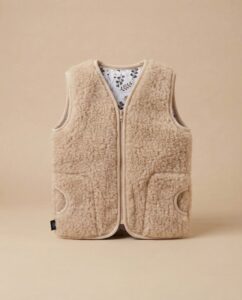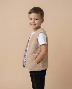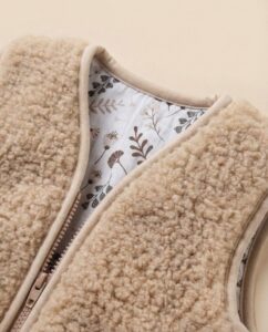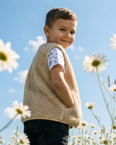 The inner layer is 100% cotton, making the vest gentle on the skin and adding extra comfort. This combination of natural materials allows the child to feel comfortable all day—whether playing outside or staying indoors.