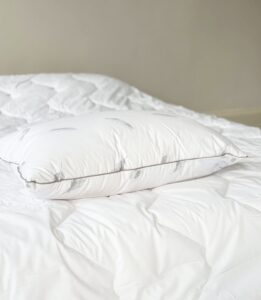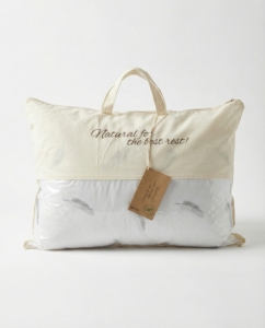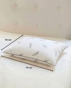 Size: 50 × 70 cm Fabric: 100% cotton Filling: goose down and feathers (outer layers), duck down and feathers (inner layer) 3-chamber construction – ideal balance of softness and support Soft on the outside, firmer on the inside Excellent air circulation and comfort throughout all seasons
