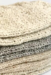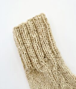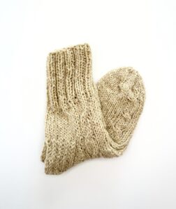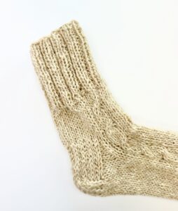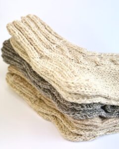 These socks are knitted from a blend of sheep wool and dog wool. Sheep wool provides softness and warmth, while dog wool adds strength and durability. Thanks to this combination, the socks retain heat well, allow the feet to breathe, and remain durable even with frequent wear.
