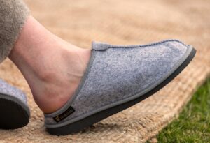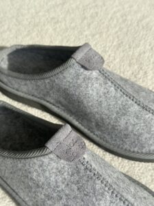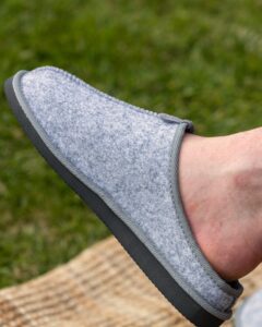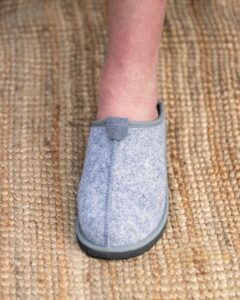 Discover exceptional comfort at home – with light grey felt-style slippers “MIST”, made from 100% natural sheep wool.