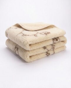 Merino wool naturally absorbs and releases moisture, keeping the blanket fresh, and it is also gentle on sensitive skin. With proper care, the blanket maintains its properties and appearance for a long time—gentle washing or hand washing is recommended, using wool-specific detergents, and airing it regularly in fresh air.