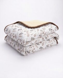 This combination of natural materials allows you to choose the most comfortable side depending on the season or personal preference. The blanket is soft, lightweight, and comfortable.