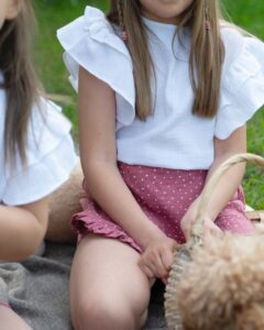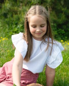 This muslin cotton blouse is exceptionally soft, breathable, and gently hugs the child’s skin. The loose, non-restrictive cut ensures all-day comfort, while the natural fabric allows the skin to breathe – even during the most active moments.