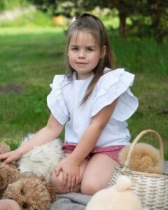 Ruffles, bows, or other delicate accents give the blouse a charming lightness and elegance. It pairs perfectly with skirts, shorts, or trousers – a stylish choice for both daily wear and celebrations.