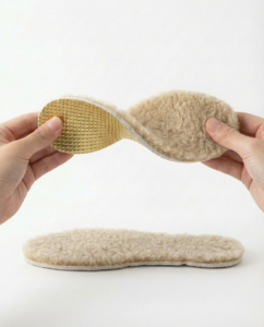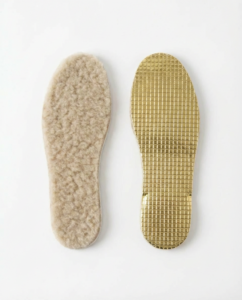 Warm and comfortable insoles made from natural pressed wool, designed for extra comfort and warmth. The bottom layer with foil helps retain heat and protects against cold and moisture.