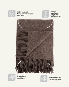 COCOA BROWN is a cozy, natural, and time-tested choice for your home. The blanket is made from high-quality New Zealand sheep wool, valued for its softness, purity, and durability.