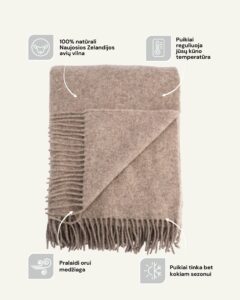 LIGHT BROWN is a cozy and natural blanket that quickly becomes a favorite accent in your home. Made from high-quality New Zealand sheep wool, it is warm, pleasant to the touch, and allows the skin to breathe. This means it will keep you comfortable both in winter and on cooler summer evenings.