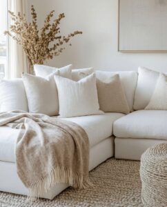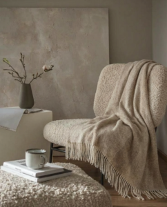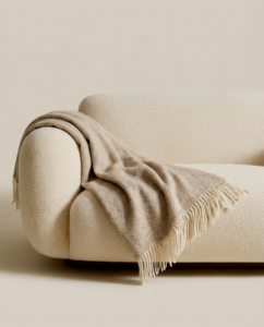 Soft brown stripes give the blanket a distinctive look while maintaining a calm, easy-to-match design. Natural shades blend beautifully with various interior colors and add coziness to your home. Light fringes along the edges add a subtle charm.