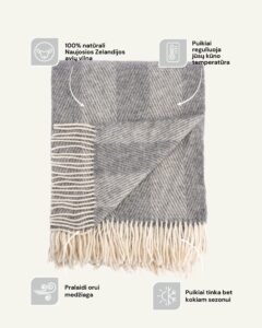 STRIPED LIGHT GREY is a cozy, natural, and time-tested choice for your home. The blanket is made from high-quality New Zealand sheep wool, valued for its softness, purity, and durability.