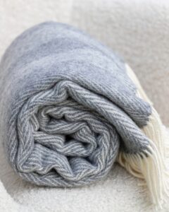 This New Zealand wool blanket is warm, pleasant to the touch, and naturally breathable. It retains heat well while preventing overheating, making it suitable for cool autumn or winter evenings as well as cozy summer nights on the terrace.