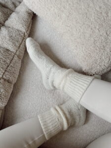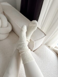 The socks naturally regulate temperature – they keep your feet warm in cold conditions and allow them to breathe, making them suitable not only for winter but also for warmer seasons. Wool absorbs moisture well, maintaining a dry and comfortable feel.
