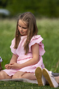 This children’s blouse, made from 100 % natural muslin cotton, is especially soft, breathable, and gently hugs the skin. The light, non-restrictive cut ensures comfort throughout the day, while the natural fabric lets the skin breathe – even in the most active moments.