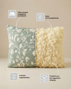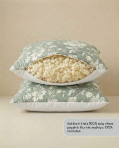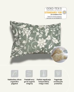 This is a natural, high-quality, and firmer pillow designed for those seeking reliable support and comfort during sleep. The outer fabric is made of 100% cotton, making it soft against the skin, breathable, and durable. Inside, sheep wool (350 g/m²) and a 100% sheep wool ball filling are used, providing elasticity, helping maintain the pillow’s shape, and ensuring a longer lifespan.