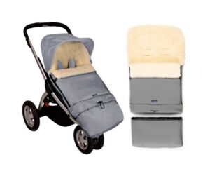 Sleep&Grow natural wool grey baby footmuff / sleeping bag with extension, Zaffiro