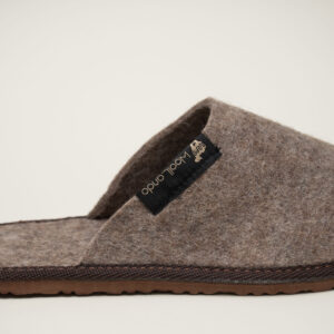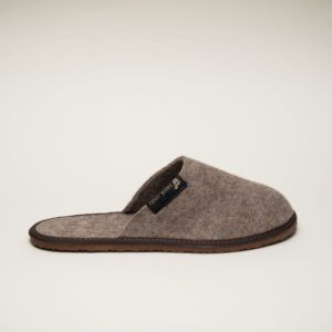 Slip-on brown felted slippers RIEŠUTAS – WoolLando