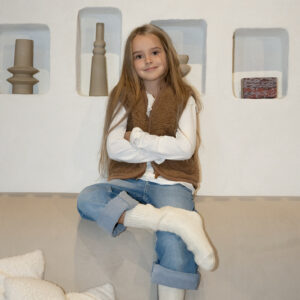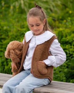This children’s camel wool vest is a lightweight, warm, and highly comfortable layering piece for cooler weather. Made from a high-quality blend of camel and merino wool, it retains heat exceptionally well while remaining breathable and not restricting the child’s movement. The vest gently fits the body without limiting activity, allowing free movement during play or outdoor time.