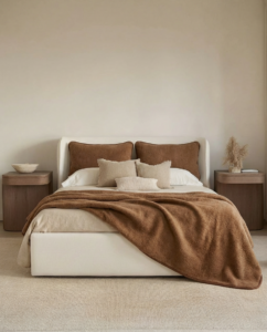 The duvet is soft, gentle, and lightweight, yet warm enough for everyday use. Its natural warm caramel color adds coziness to the bedroom and easily complements various interior styles.