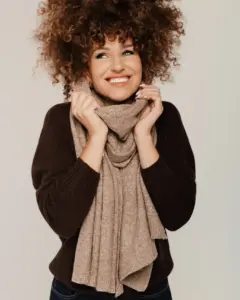 The classic, versatile color easily matches both everyday and elegant outfits. The scarf can be worn in different ways – wrapped around the neck or draped over the shoulders as a stylish accent.