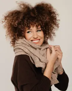 The classic, versatile color easily matches both everyday and elegant outfits. The scarf can be worn in different ways – wrapped around the neck or draped over the shoulders as a stylish accent.