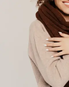 The classic, versatile color easily matches both everyday and elegant outfits. The scarf can be worn in different ways – wrapped around the neck or draped over the shoulders as a stylish accent.