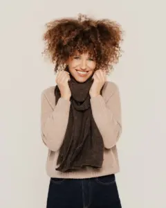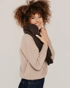 The classic, versatile color easily matches both everyday and elegant outfits. The scarf can be worn in different ways – wrapped around the neck or draped over the shoulders as a stylish accent.