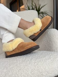 The suede leather gives the footwear an elegant look and added comfort. The foldable fur trim is not only practical but also very attractive—it adds coziness and a distinctive design detail. The subtly matching colors create an aesthetically pleasing appearance.