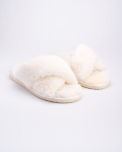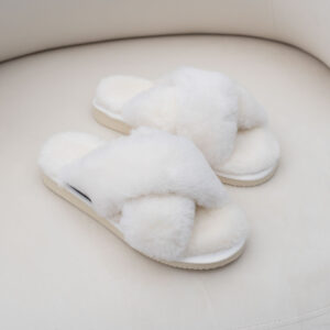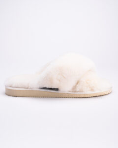 White natural fur cross-strap slippers SERA – comfort you’ll want to feel every day. Soft natural fur gently wraps around the foot, allows it to breathe, and prevents sweating in summer, making these slippers perfect for both warm and cold seasons.