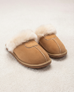 Women’s natural fur slip-on slippers CINAMONĖ, WoolLando Women’s natural fur slip-on slippers CINAMONĖ, WoolLando