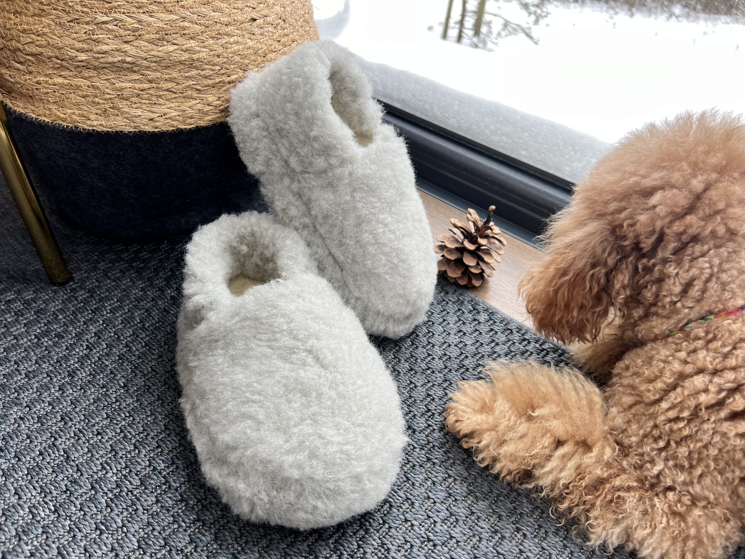 Soft and fluffy merino wool slippers for warm steps. Like walking on a fluffy cloud.